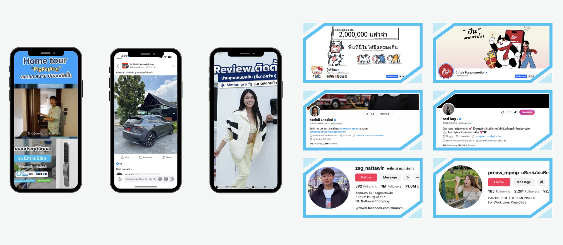 เราดูแลทั้งการวางแผน ประสานงาน และดำเนินการแคมเปญอินฟลูเอนเซอร์เพื่อสร้างความเชื่อมโยงอย่างแท้จริงระหว่างแบรนด์และผู้ชมของคุณ — ตั้งแต่การวางแผนคอนเทนต์ การจัดการไทม์ไลน์ ไปจนถึงการติดตามผลลัพธ์ — เพื่อให้แคมเปญอินฟลูเอนเซอร์สามารถสื่อสารสารแบรนด์ได้อย่างเหมาะสมและวัดผลได้จริง